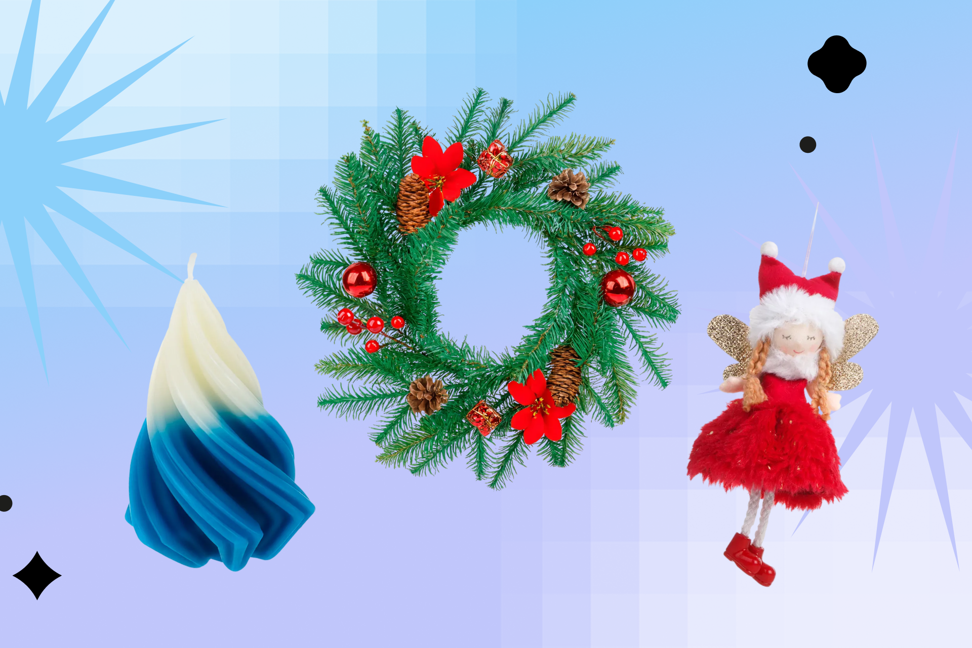 Набор новогодних аксессуаров — беспроигрышный вариант. Такой подарок подойдёт и близкой подруге, и малознакомой коллеге, для которой вы стали Тайным Сантой. Гирлянды, уютные игрушки для ёлки, ароматные свечи и красивая посуда создадут атмосферу праздника и сделают зимние вечера уютнее.