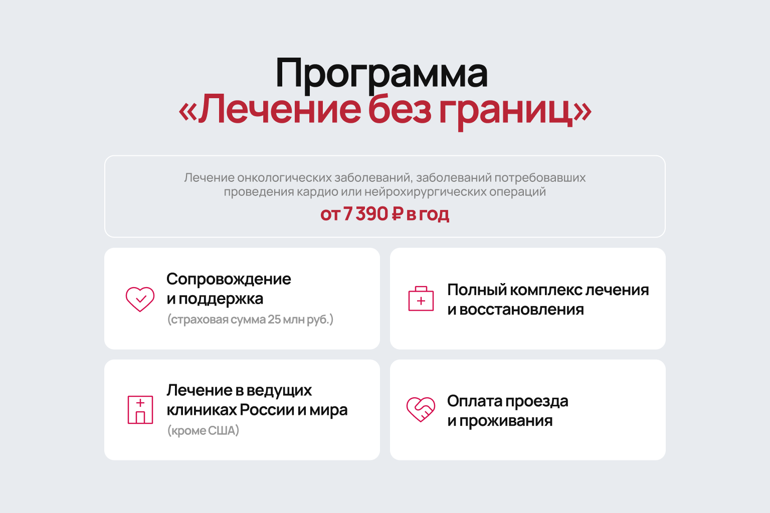 По данным , в России ежегодно диагностируется около 600 тысяч новых случаев онкологии. Лечение онкологических заболеваний — это не только сложный процесс, но и большие траты. Диагностика, химиотерапия, операции, таргетная терапия и реабилитация могут стоить от сотен тысяч до нескольких миллионов рублей. Например, один курс химиотерапии обходится в 200–500 тысяч рублей, а сложные операции или трансплантация костного мозга — в миллионы, в особенности если речь идёт о лечении за границей. Полис онкострахования от Росгосстраха покрывает до 8 миллионов рублей на медицинские услуги, включая лекарства, психологическую помощь и восстановление в санаториях. Эта финансовая защита позволяет в трудный момент сосредоточиться на лечении, а не на сборе средств.