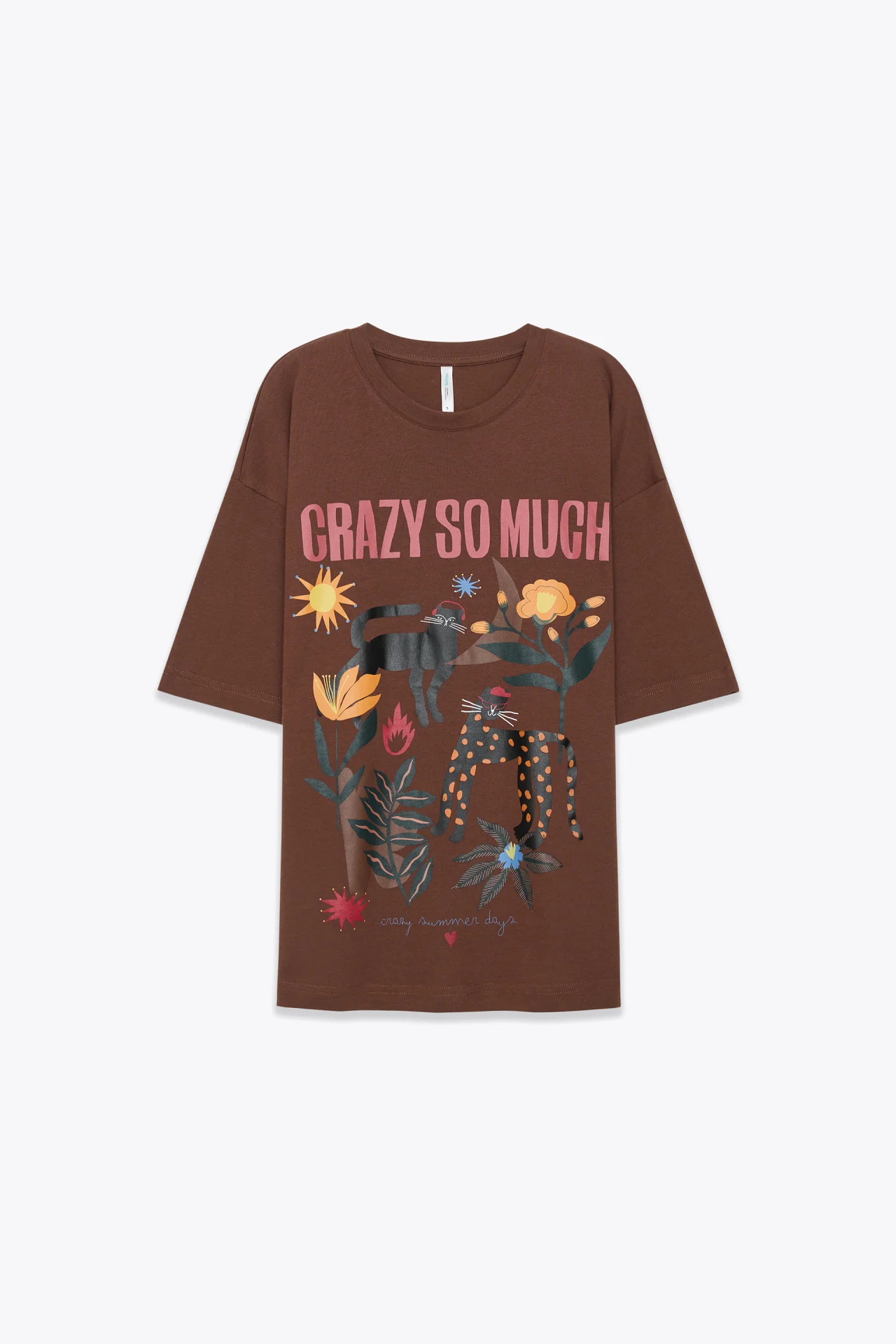 Универсальная хлопковая футболка с принтом наполнит расслабленными мотивами летние образы. Подойдёт для жарких дней.