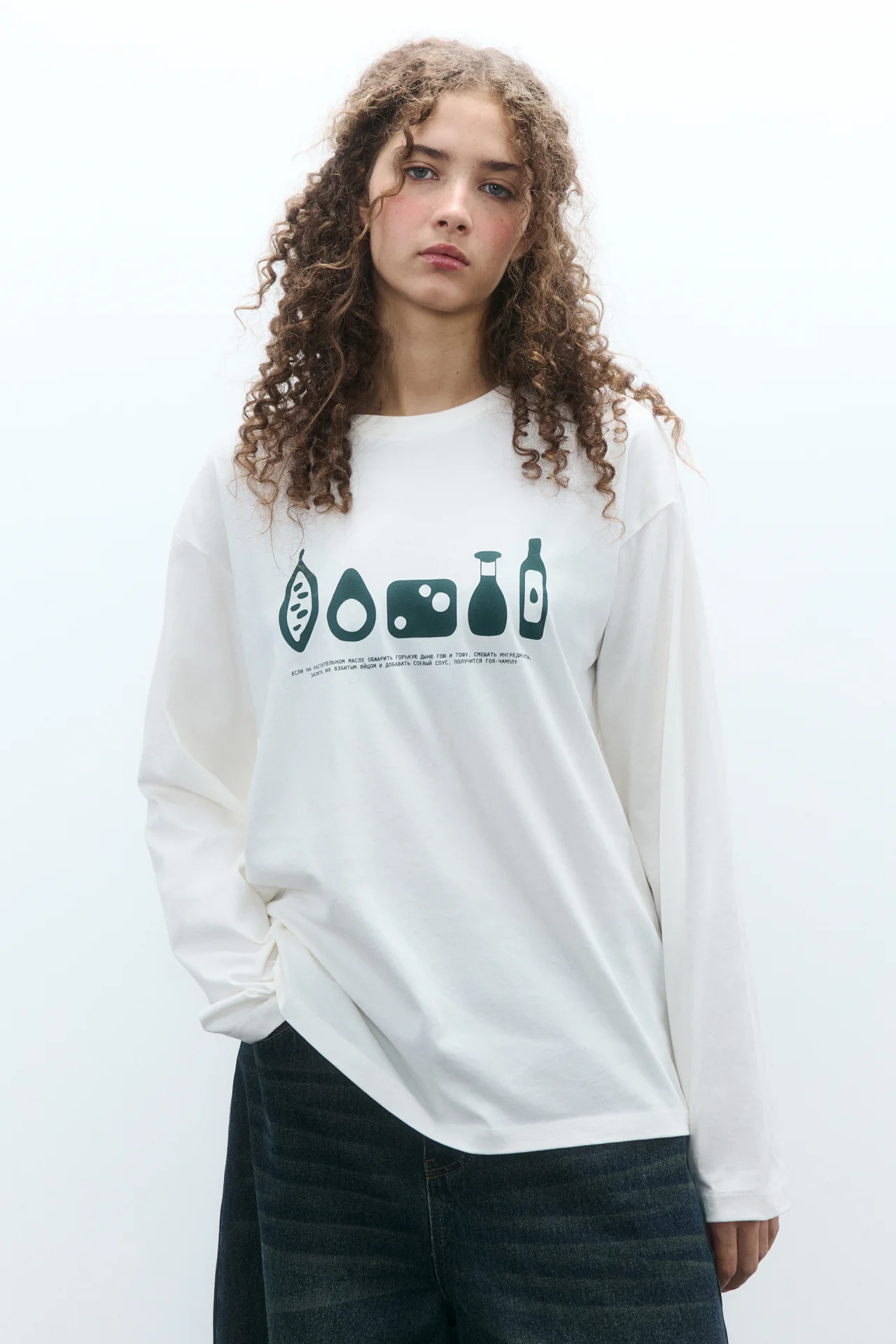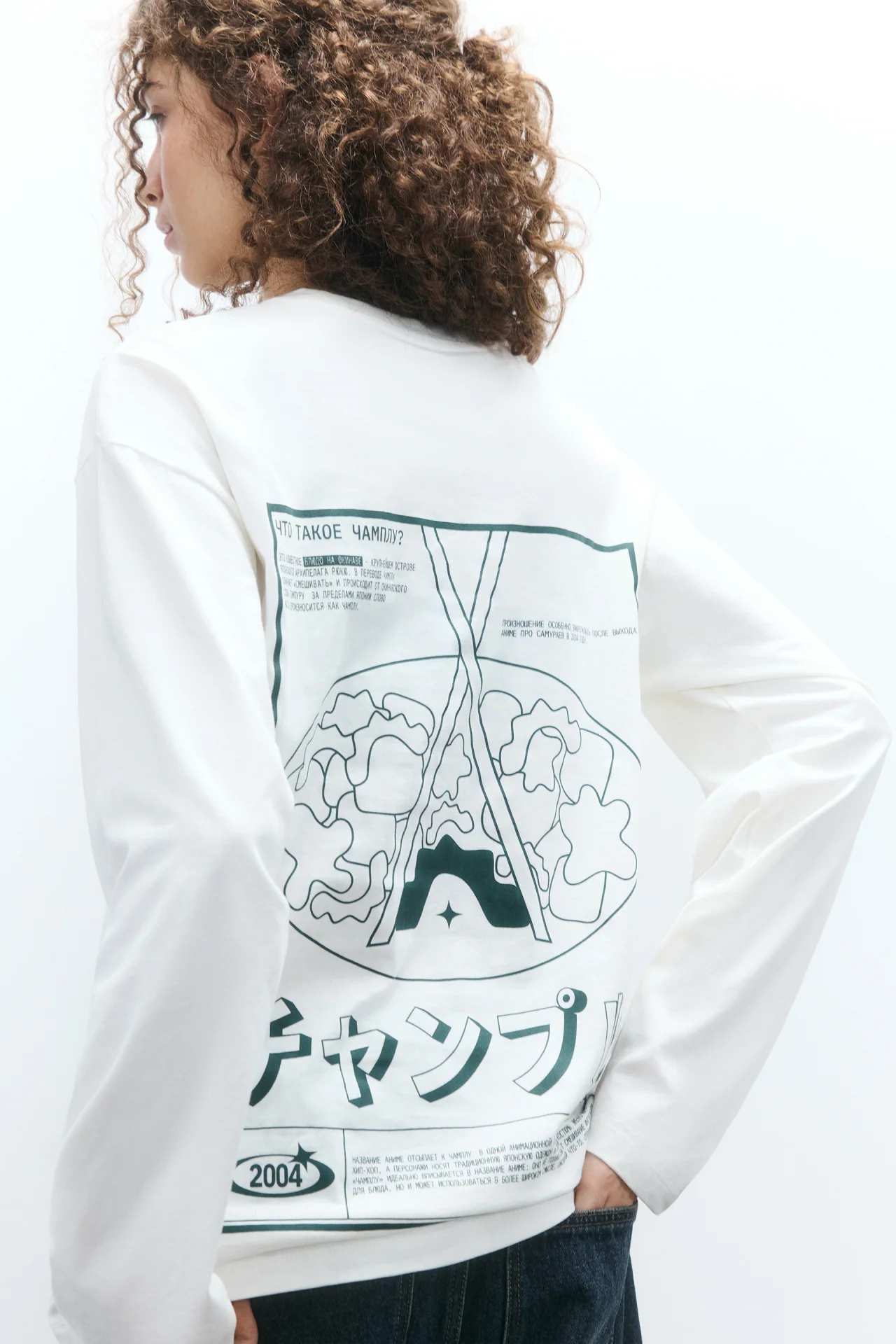 Этим лонгсливом с принтом можно разбавить повседневные, спортивные, офисные или уличные аутфиты. В нём тебе будет максимально комфортно как в жаркую, так и в прохладную погоду. Выполнен он из хлопка.