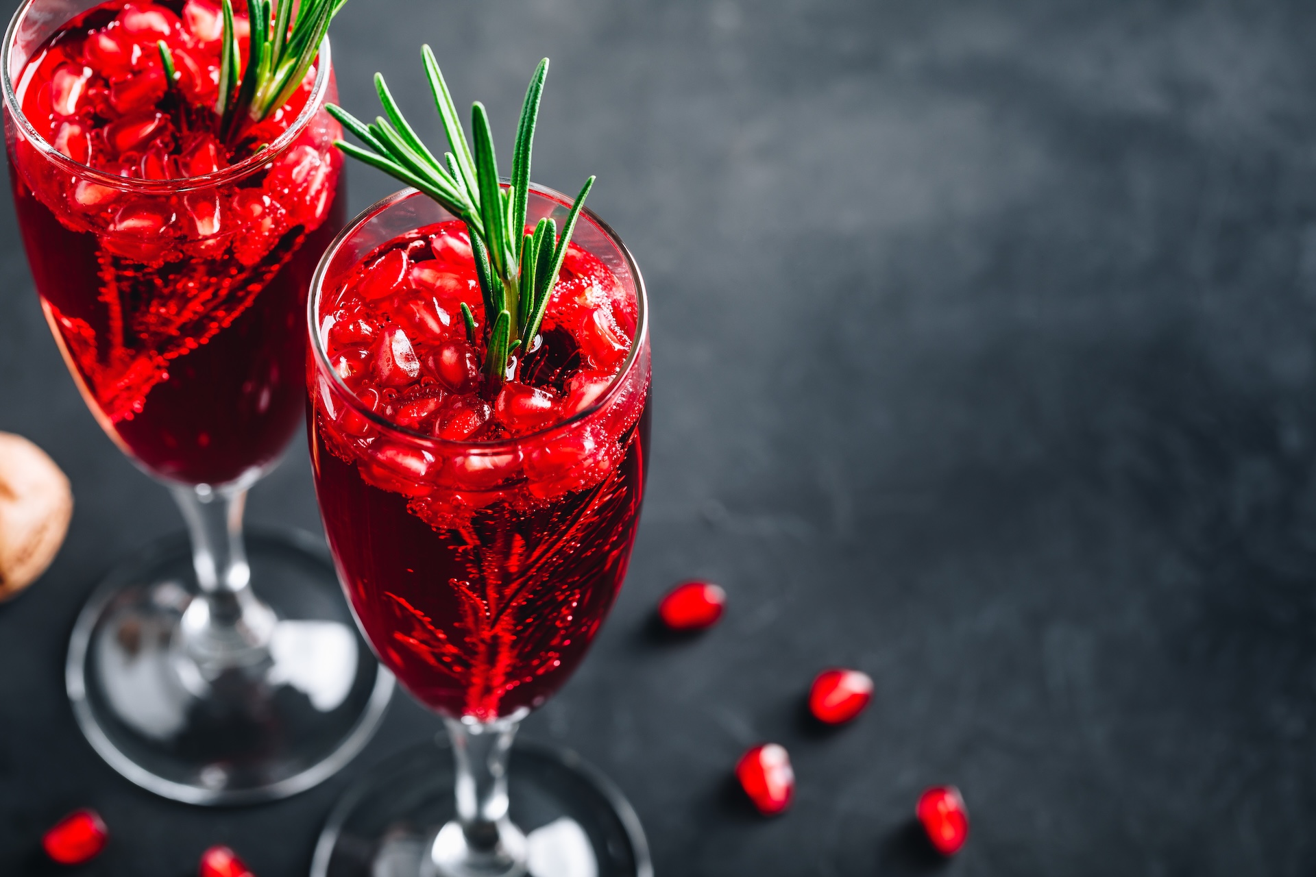 - Смешайте клюквенный сок и содовую и разлейте по бокалам.