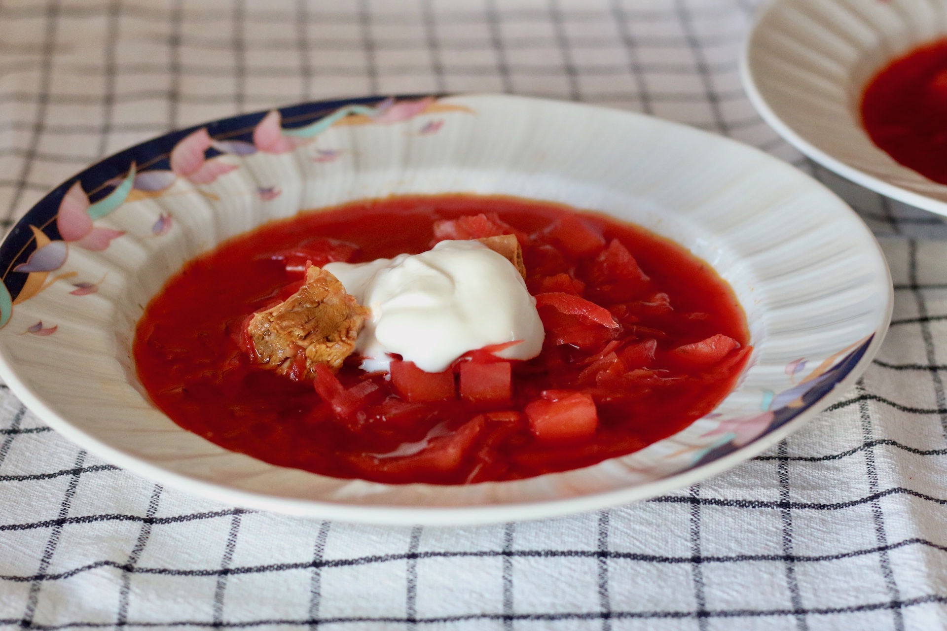 Я часто готовлю борщ по этому рецепту, так что его можно назвать проверенным временем. Для удобства я варю бульон и запекаю свёклу накануне, потому что это наиболее длительные этапы в процессе. Плюс свёкла успевает остыть, и её удобнее чистить и натирать на тёрке.