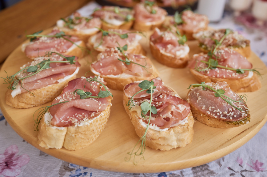 Быстрый вариант закуски, который выглядит так, будто вы долго колдовали на кухне. Подсушенный багет даёт хруст, творожный сыр — кремовость, а прошутто добавляет вкусу насыщенности. Микрозелень в подаче необязательна, но делает блюдо более нарядным.
