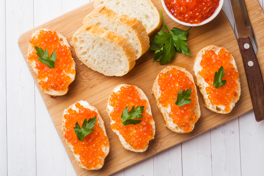 - Сверху распределите икру — примерно по чайной ложке на бутерброд.