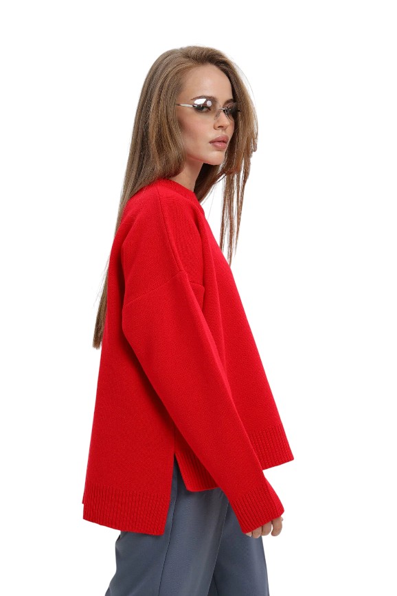 Даём бой серым хмурым будням и становимся тем самым красочным пятном, которое наполняет энергией всех вокруг. Ткань этого свитера почти полностью состоит из акрила, благодаря чему изделие хорошо сохраняет тепло, оставаясь лёгким и комфортным. Крой в стиле оверсайз дарит ощущение свободы, а укороченный спереди фасон делает его удачным вариантом для девушек любого роста.