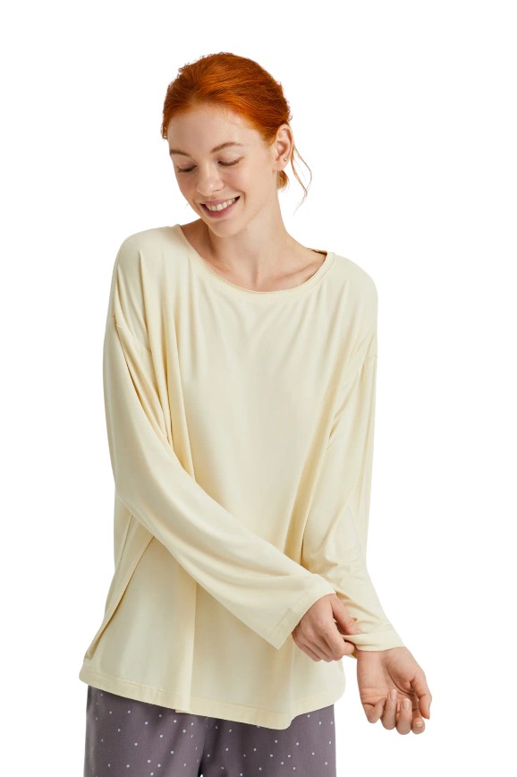Лонгслив из мягкой вискозы с добавлением эластана буквально создан для дома. Он свободно сидит, не стесняет движений и приятно охлаждает кожу, а аккуратные детали делают его не просто удобной, но и красивой вещью. Покупательницы отмечают, что в тёплую погоду лонгслив отлично выручает и на улице, а ещё его берут с собой в отпуск — настолько он лёгкий, универсальный и практичный. Снимать его не хочется вовсе, так что будьте осторожны: этот лонг может вызвать настоящую зависимость.