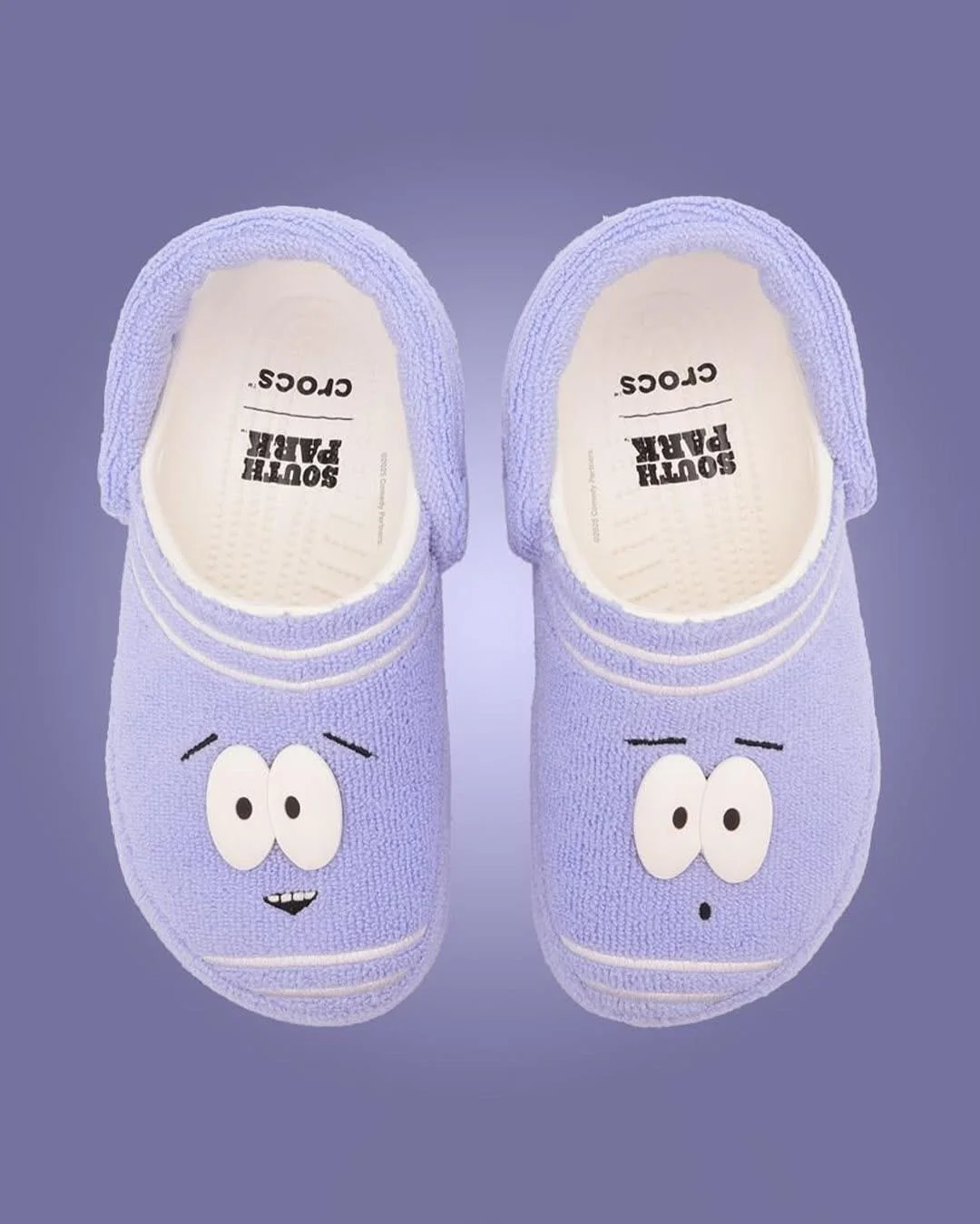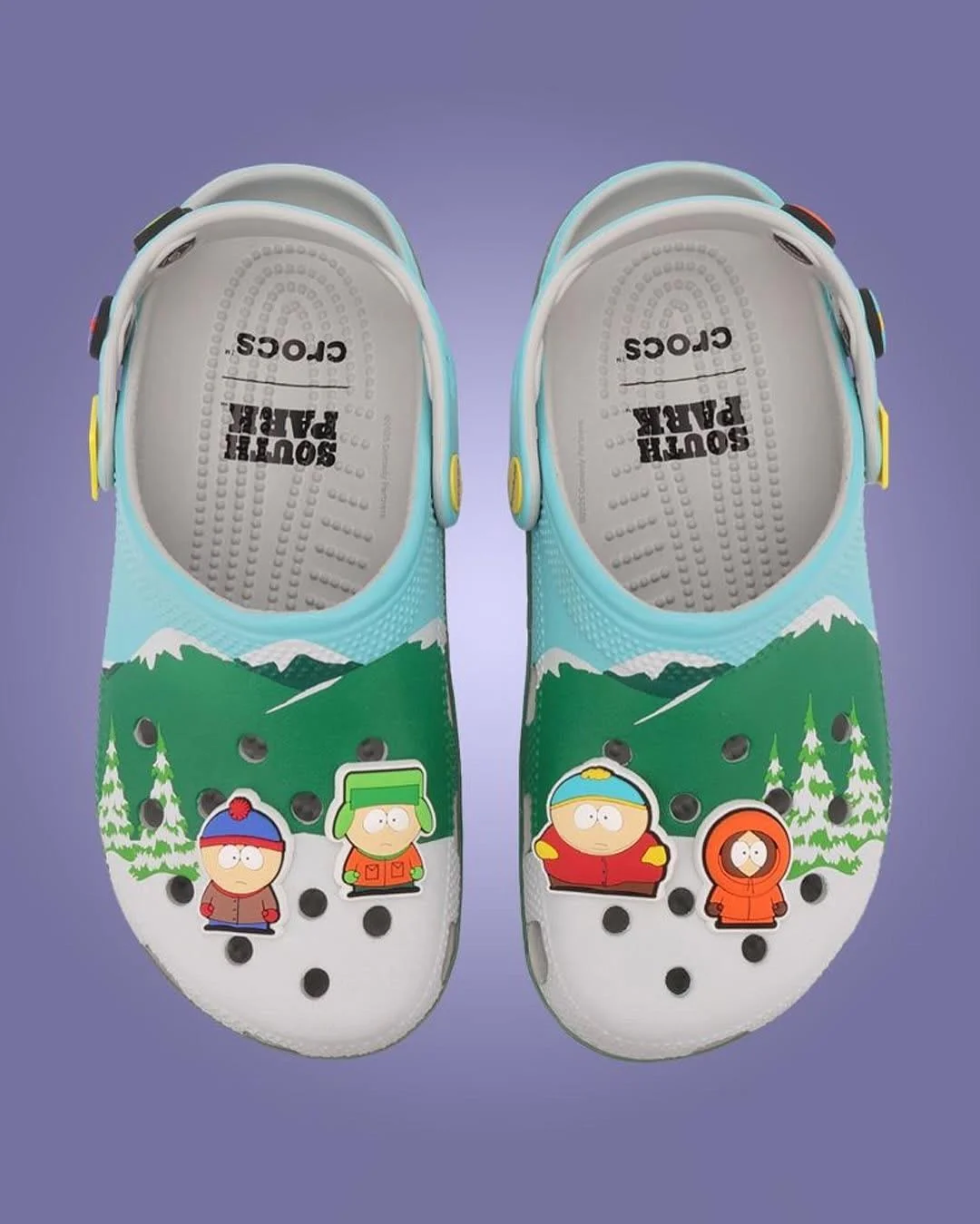 Дизайнеры Crocs разработали причудливые модели, пытаясь через них максимально точно передать настроение «Южного парка». Четыре сабо посвящены конкретным героям шоу, а одни мультсериалу в целом. На последние нанесён пейзаж вымышленного города и помещены джиббитсы в виде фигурок Эрика, Кенни, Кайла и Стэна.
