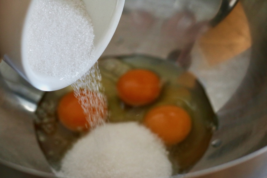 1. В металлической миске или сотейнике соединить яйца, желток и сахар.