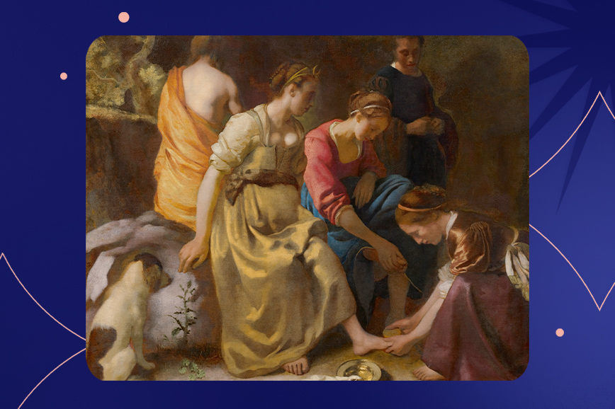 Караваджисты вдохновлялись стилем итальянца Караваджо: переняли его любовь к резкому контрасту света и тени и реалистичным, драматичным сценам, но соединили это с голландской сдержанностью и бытом. Художественный путь Вермеера начался с изображения библейских и мифологических картин. В них ярко прослеживается влияние той самой утрехтской школы. Это особенно видно на полотнах «Диана и её спутницы» и «Христос в доме Марфы и Марии». Здесь используется контраст света и тени, изображены реалистичные фигуры, а мифологические персонажи выглядят приземлённо, как обычные люди.