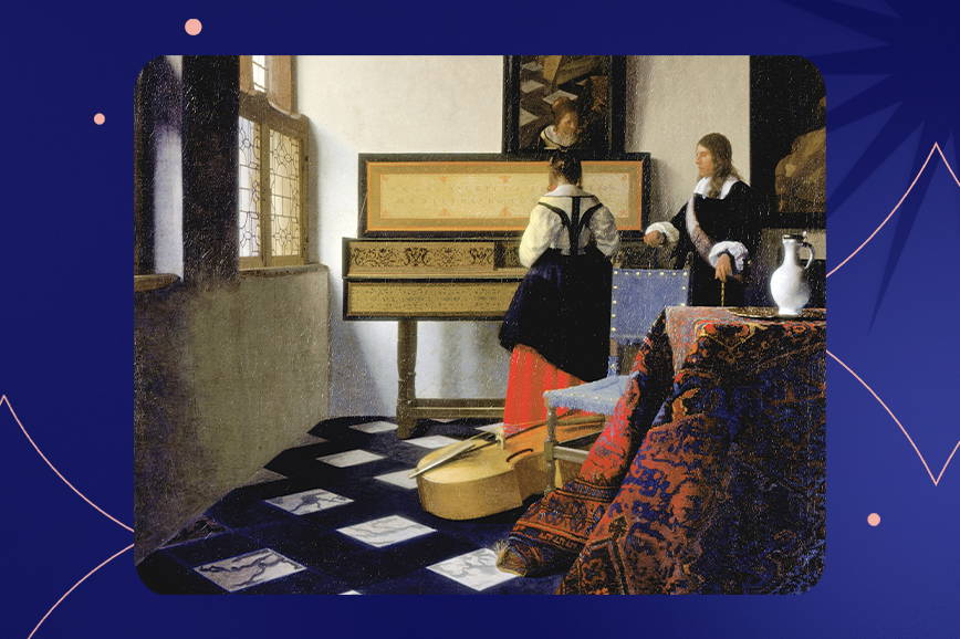 Именно эти работы прославили Вермеера и вписали его имя в историю живописи. Они ценятся за то, как искусно и интимно он показал сцены бытовой жизни, при этом место для тайны. Один из ярких примеров — картина «Уроки музыки», на которой девушка играет на инструменте под внимательным взглядом элегантного мужчины. Вермеер дразнит зрителя, заставляя гадать, кто они друг другу — просто наставник и ученица или же влюблённые? А может, тут и вовсе скрыта история безответной любви?