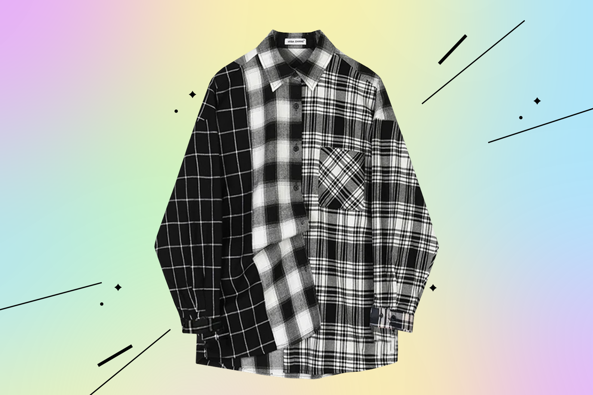 Эту чёрно-белую рубашку не назовёшь скучной, ведь здесь сочетаются сразу три вида клетки. При этом модель выглядит стильно за счёт цветового единообразия и здорово впишется в любой монохромный образ.