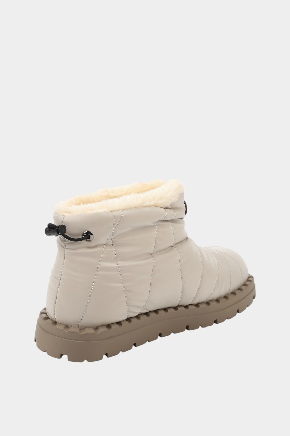 Верх выполнен из текстиля с водоотталкивающей пропиткой, поэтому ноги не промокают в слякотную погоду. Внутри находится искусственный мех, и он действительно тёплый: даже в −20 °C нога не замерзает. А если надеть теплые носки, то и в −25 °C чувствует себя прекрасно. Тем более, что высота подошвы в 3 сантиметра изолирует стопу от холодного асфальта. Сделана она из термопластичной резины, которая не скользит, а это одно из главных требований к зимней обуви.