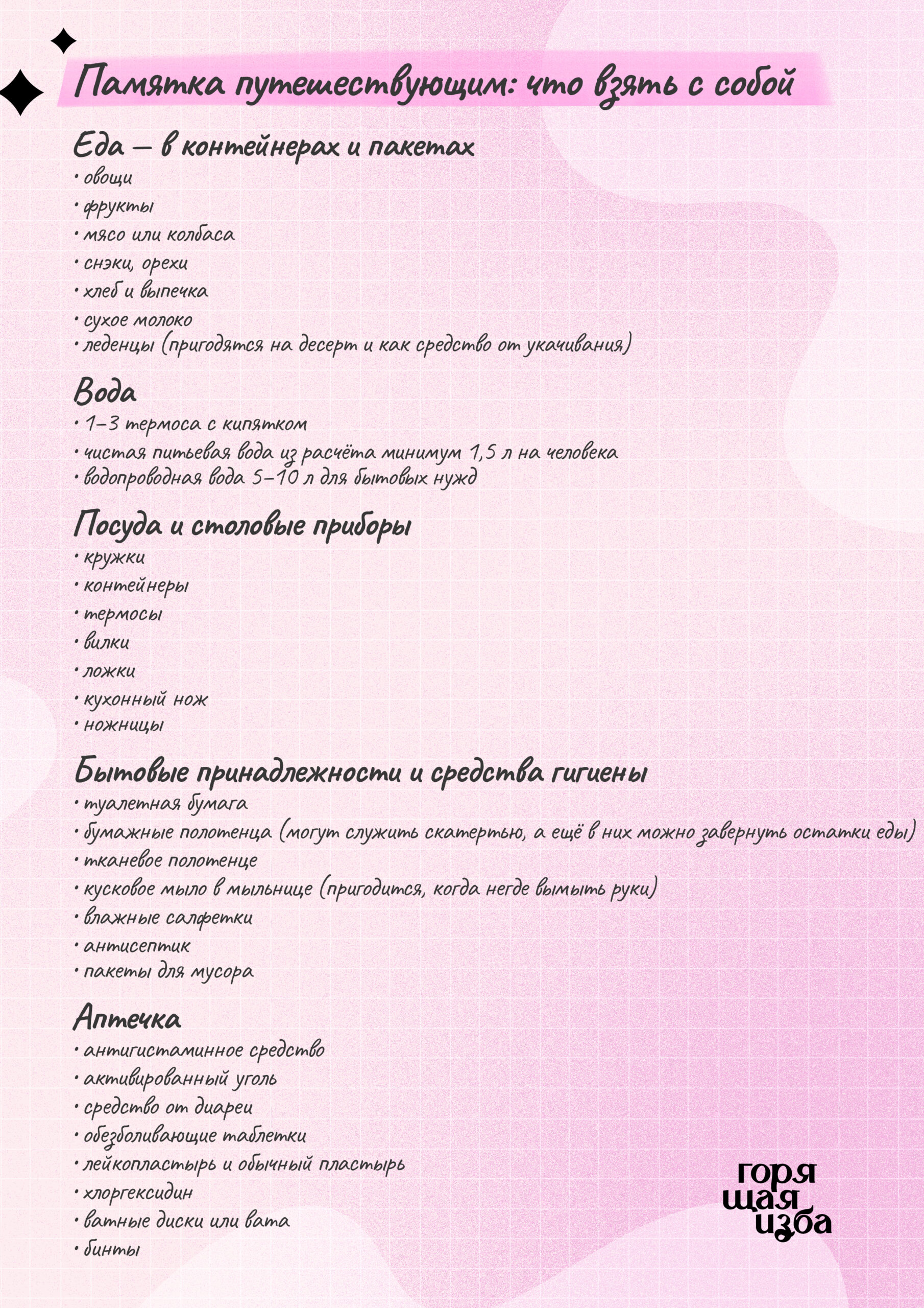 Теперь вы знаете, какая еда подойдёт для автопутешествия. Что ещё взять в дорогу — смотрите в нашей памятке.