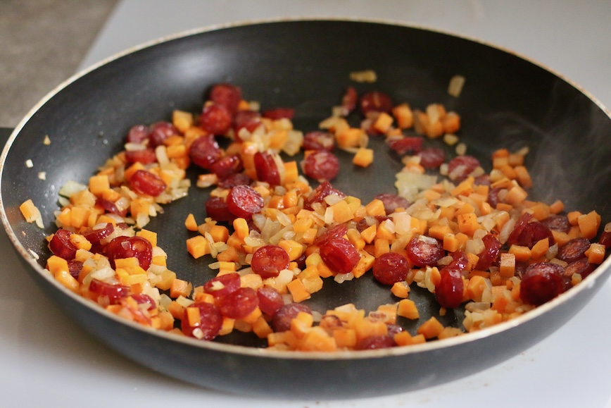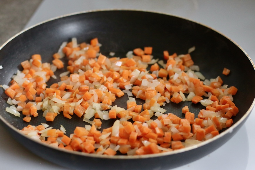 7. Добавьте морковь и пассеруйте ещё пару минут.