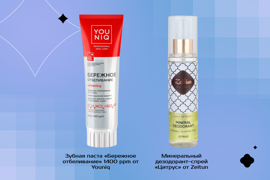 Забота о себе — это всегда больше чем набор средств. Это ещё и выбор в пользу компонентов, которые не травмируют кожу, — как, например, в дезодоранте без алюминия в составе. И внимание к себе даже в мелочах — поэтому в нашем боксе есть не только кремы и помады, но и зубная паста.