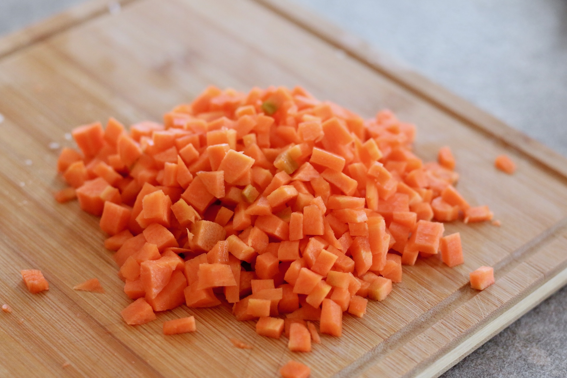 3. Лук мелко нашинкуйте. Морковь нарежьте кубиками.