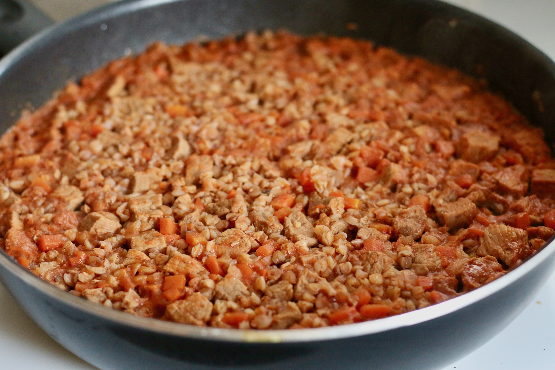 Гречка с овощами и мясом — дежурное домашнее блюдо, которое я готовлю регулярно. Получается комфортная еда из привычных продуктов, да ещё и с минимальными затратами времени. Мне особенно нравится, что и мясо, и гарнир тушатся в одной сковороде. А значит, не придётся мыть гору посуды после еды.