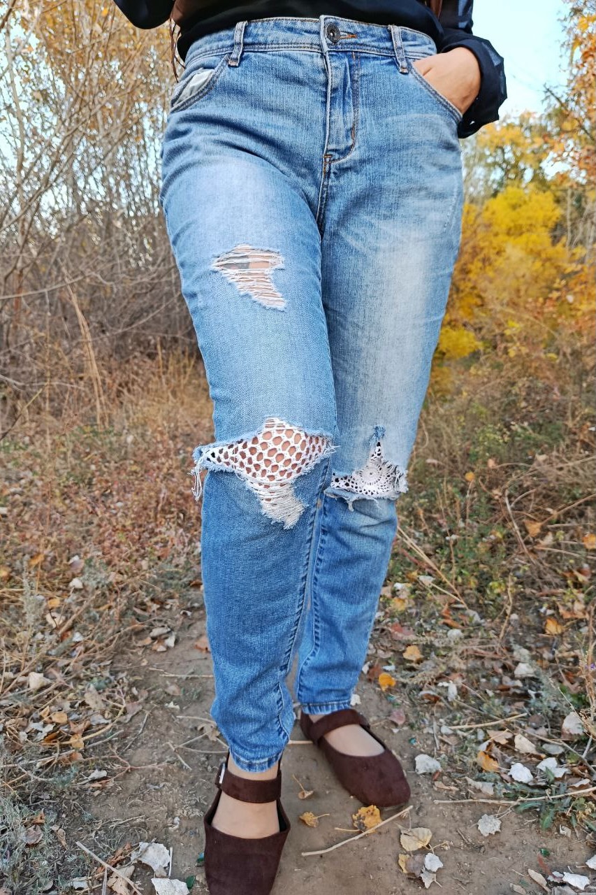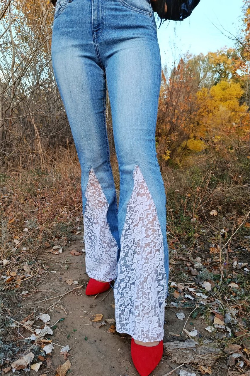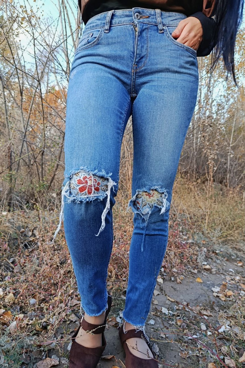 Недавно был какой-то творческий кризис, сформулировала себе запрос: нужно интересное занятие, связанное с работой руками, с перспективой монетизации. Зашла в Pinterest — и тут же попалась идея с джинсами. Я и раньше такое любила, в школе и студенчестве всегда расшивала джинсы бисером и цветными нитками. А тут свежее для меня направление, сразу увлекло.