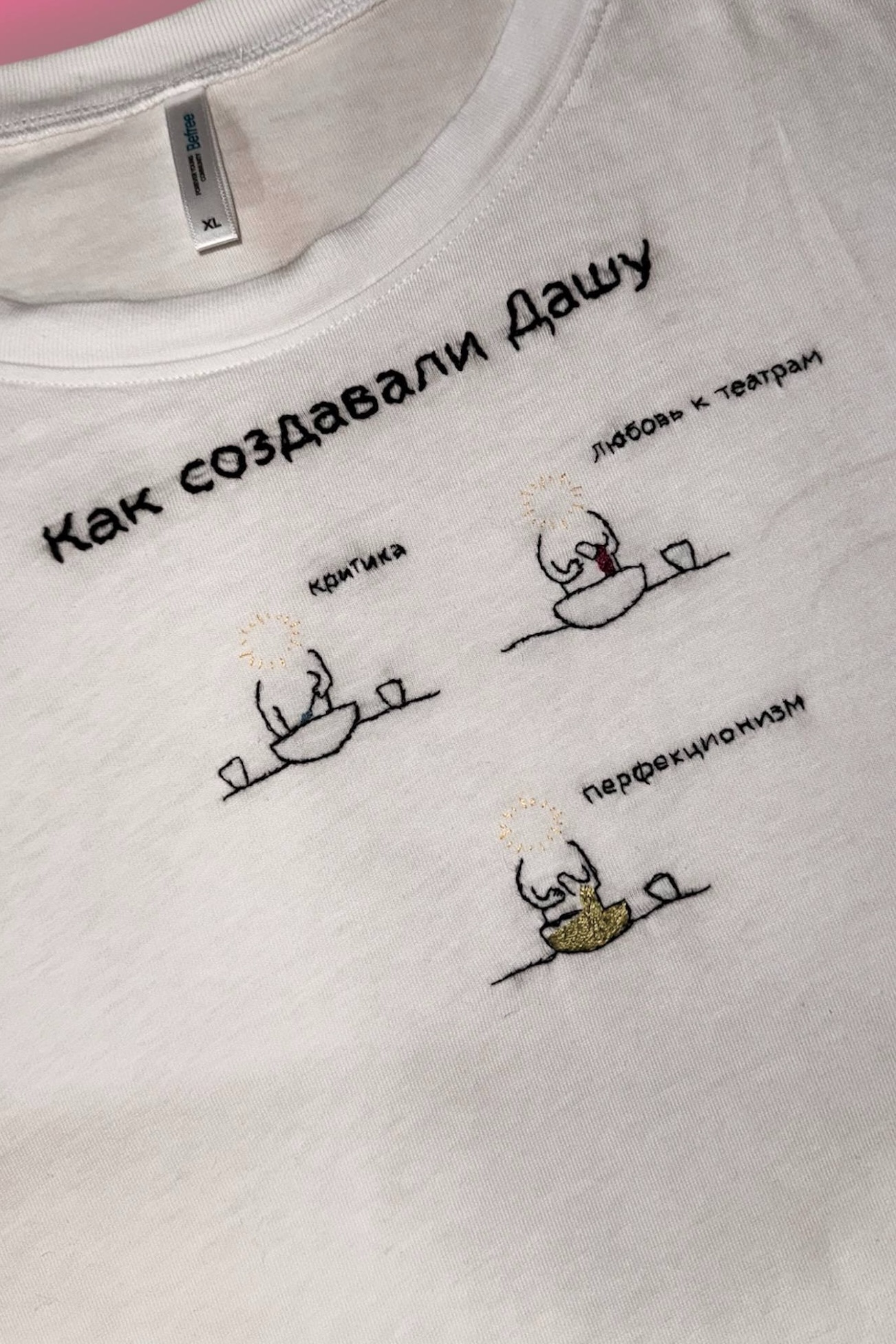 Ручной вышивкой я занимаюсь уже пять лет. Начинала с вышивки крестиком, затем увидела технику гладь и загорелась. Я вышиваю в разных стилях — начиная от контурных фраз и заканчивая портретами домашних питомцев. У меня даже был опыт вышивки на бумаге!