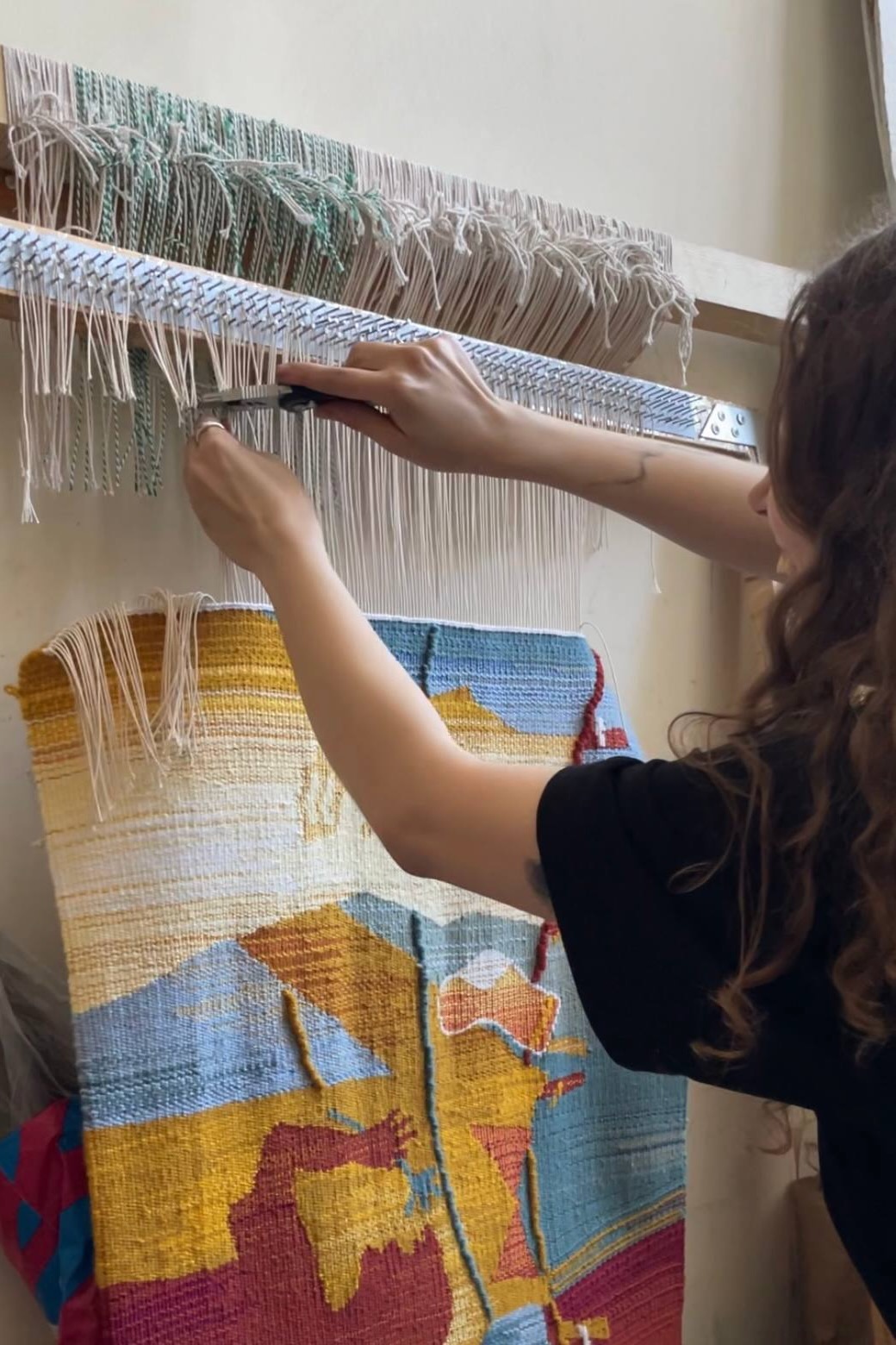 Я всегда любила нитки. Когда пришло время выбирать специальность для поступления, нашла Академию Штиглица, где преподают ткачество. Вот уже четвёртый год занимаюсь на ремизном станке и тку шпалеры. Планирую и диплом делать в этой же технике.