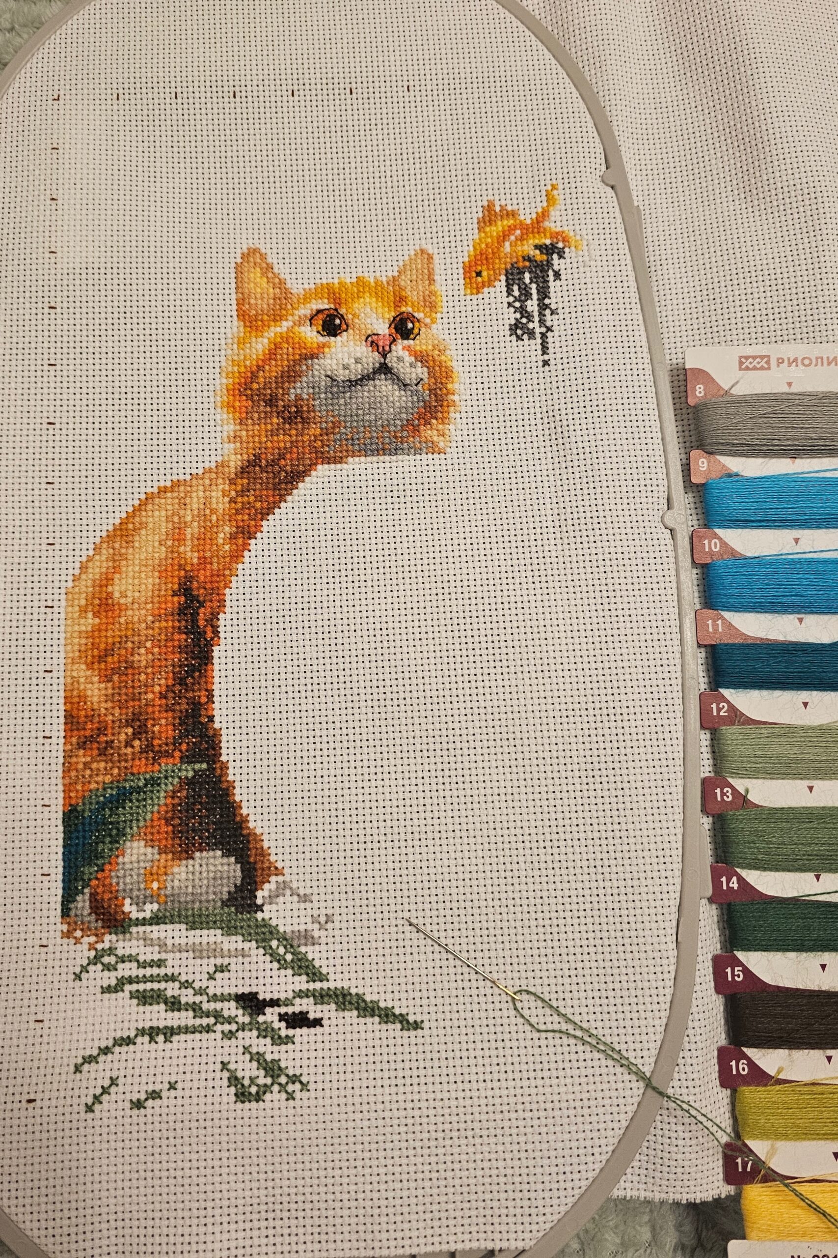 Я обожаю кошек. В гостях первым делом ищу взглядом пушистого хозяина. И, если он не против, обязательно нахожу минутку, чтобы его погладить. Своего кота пока завести не получается. Чтобы это компенсировать это, я вышиваю их.
