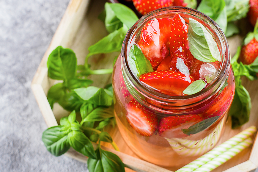 Это яркое, модное сочетание точно стоит попробовать. Ведь чай с клубникой и базиликом отлично утоляет жажду благодаря приятной ягодной кислинке.