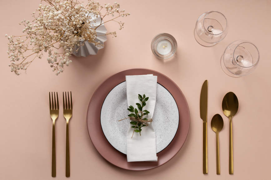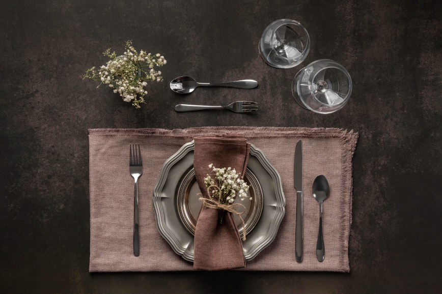 Пример классической сервировки с акцентной тарелкой. Изображение: freepik / Freepik