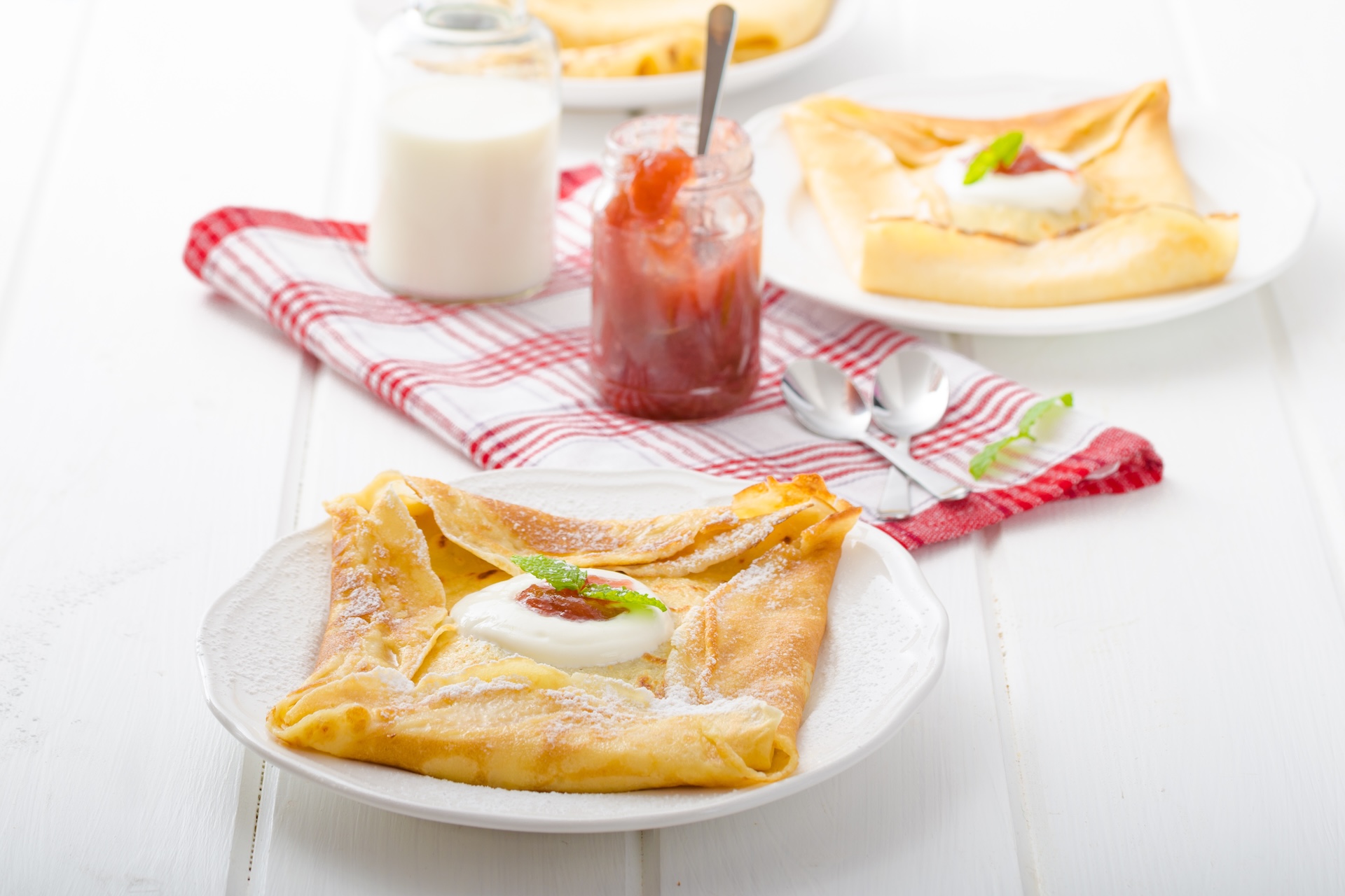 Этот простой способ заворачивания блинов особенно хорош для тягучих начинок: варенья, джемов, паштетов и намазок на основе творожного сыра.