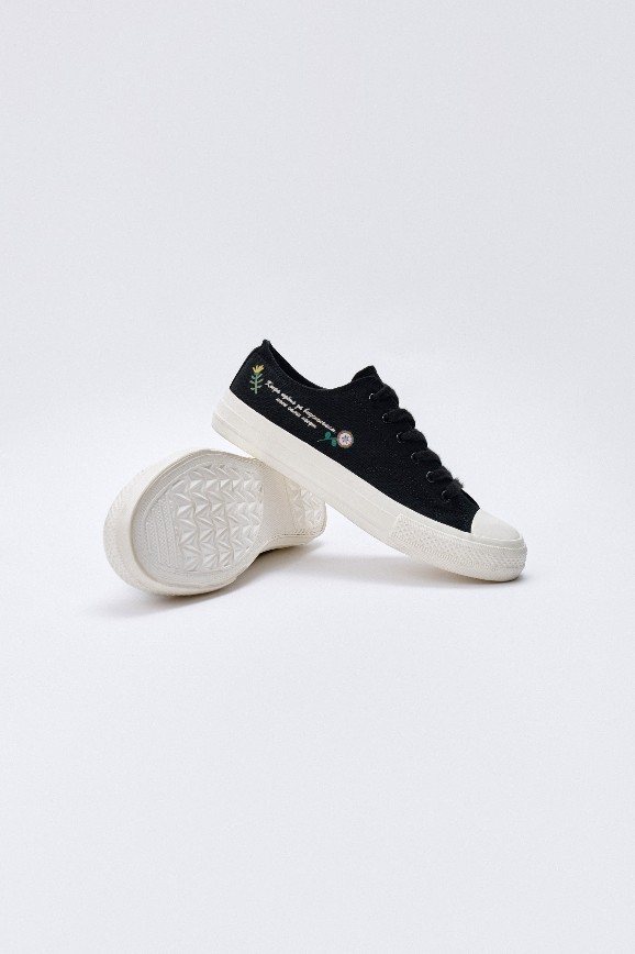 Снаружи и внутри кеды выполнены из 100%-го хлопка, поэтому обувь дышит и не заставляет ноги обливаться потом. Самое то на позднюю весну и лето! Подошва — плоская и гибкая, из резины, с нормальным сцеплением с асфальтом и плиткой. Это, конечно, не спортивная амортизация, но подходит для долгих прогулок и повседневной носки. К тому же округлый нос не сдавливает пальцы, кеды хорошо сгибаются при ходьбе и не «дубеют» со временем.
