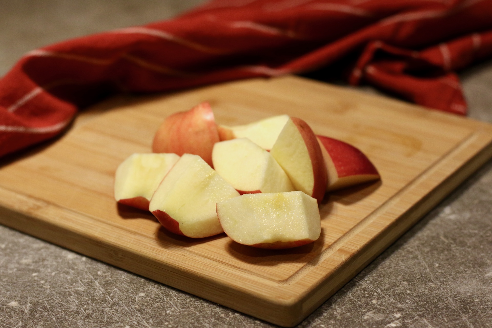4. Яблоки нарежьте на четвертинки, удалив семечки.