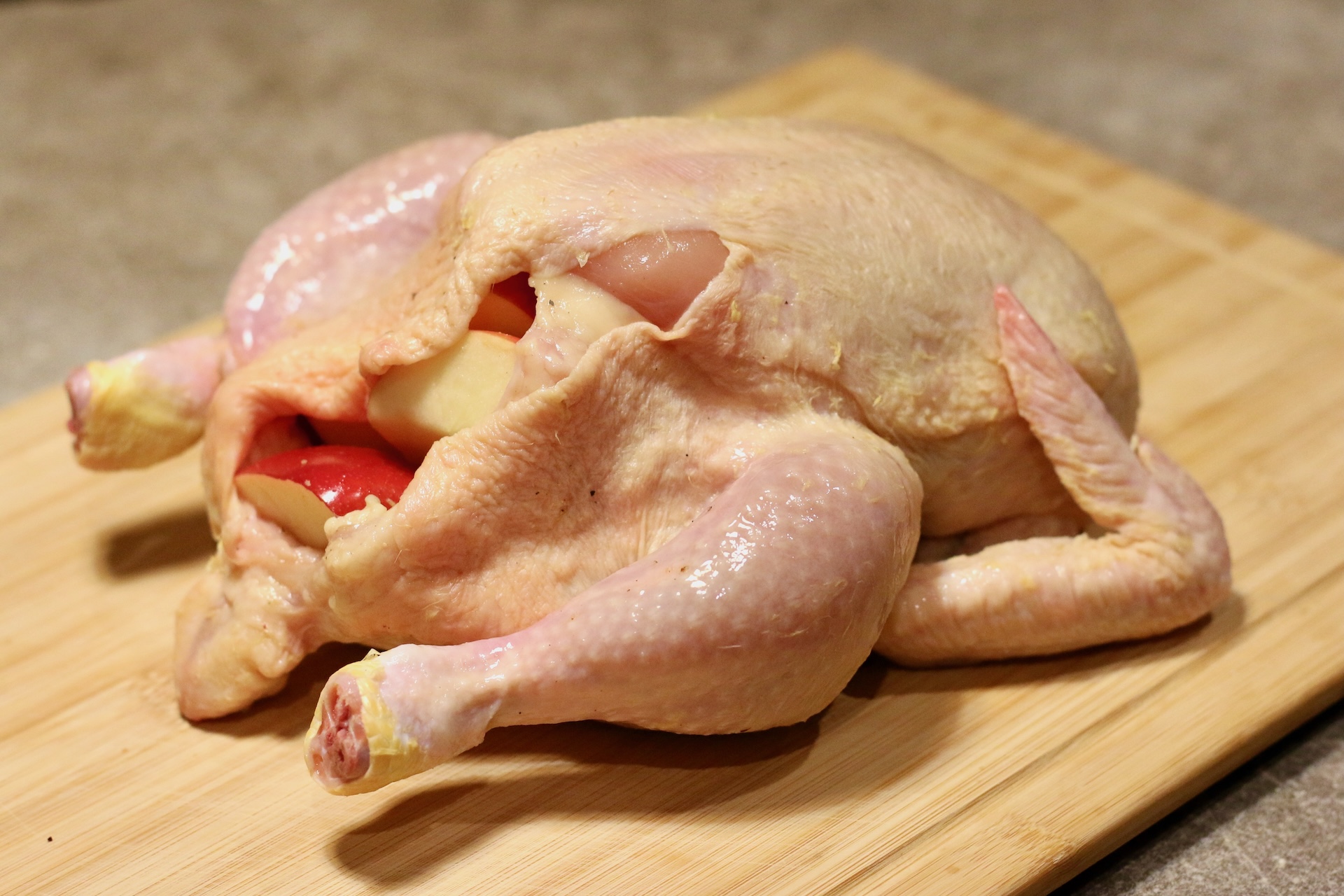 Этот рецепт — настоящее волшебство. Курица на соли готовится проще простого. Можно даже не фаршировать тушку яблоками, если вам неохота. Результат всё равно получится великолепным: мягкое нежное мясо с буквально брызжущим соком и хрустящая золотистая аппетитная корочка.