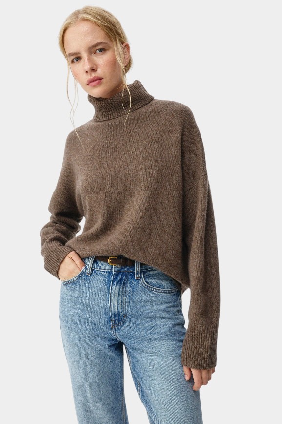 Мягкий свитер из кашемира — одна из ключевых вещей ленивого шика. Он не кричит: «я богата!», выглядит просто, а ощущение дороговизны образа создаёт из-за фактуры и сдержанного шоколадного цвета. Его можно сочетать с джинсами, юбкой миди или широкими брюками.