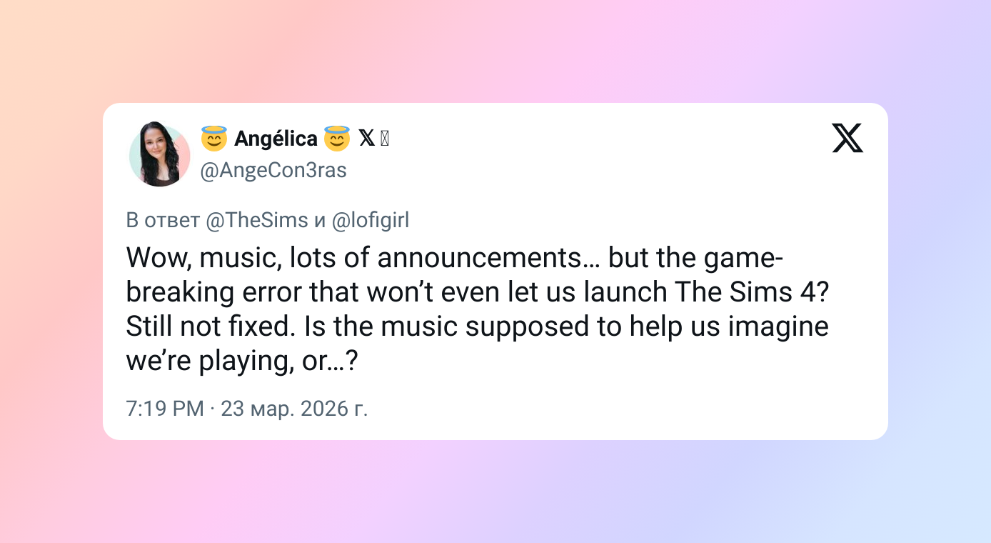 Музыка, куча анонсов… а критическая ошибка, из-за которой The Sims 4 вообще не запускается, всё ещё не исправлена. Это что, музыка для того, чтобы мы просто представляли, будто играем, или как?