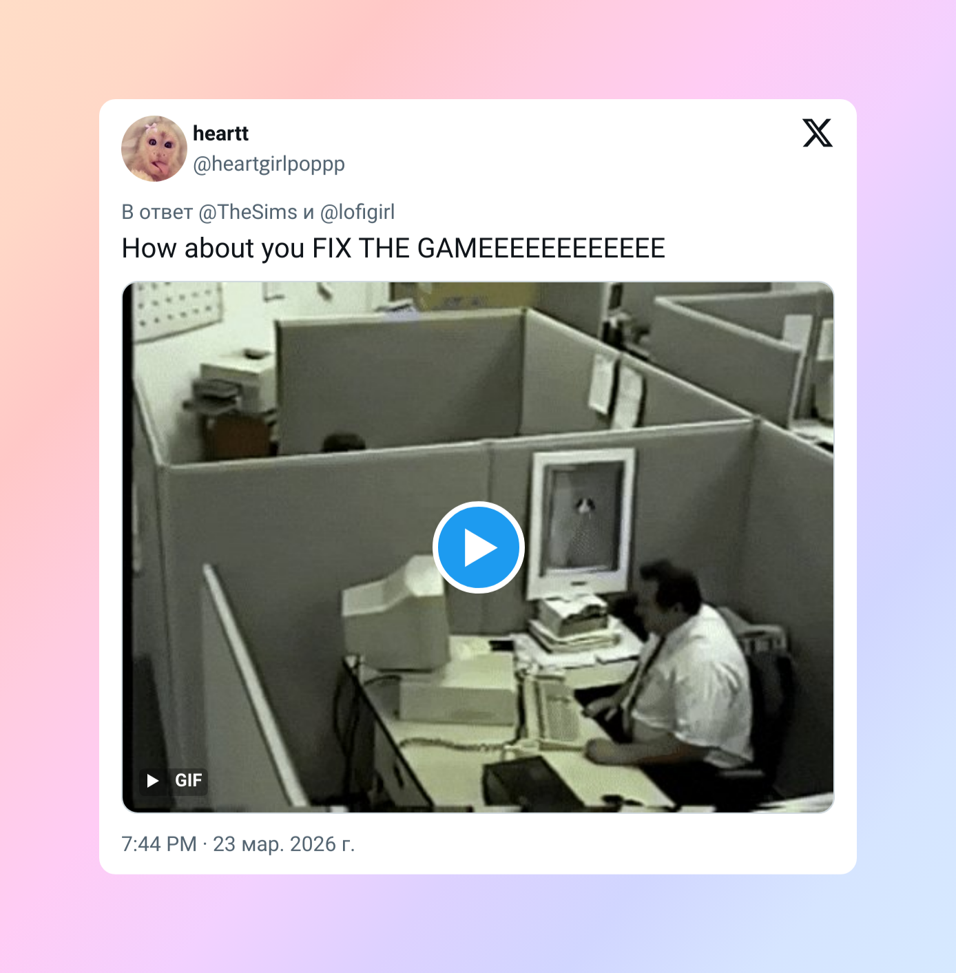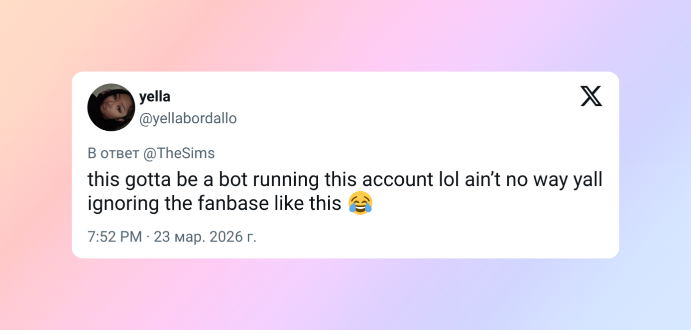 В официальном аккаунте игры в соцсети X 22 марта опубликовали многообещающий тизер. В нём девочка с узнаваемыми чертами просыпается, подходит к комоду и переодевается — всё в характерной стилистике The Sims. В ролике также указали дату — 23 марта: из‑за этого у многих сложилось впечатление, что персонаж появится в самой игре. Однако на следующий день выяснилось, что речь совсем о другом.