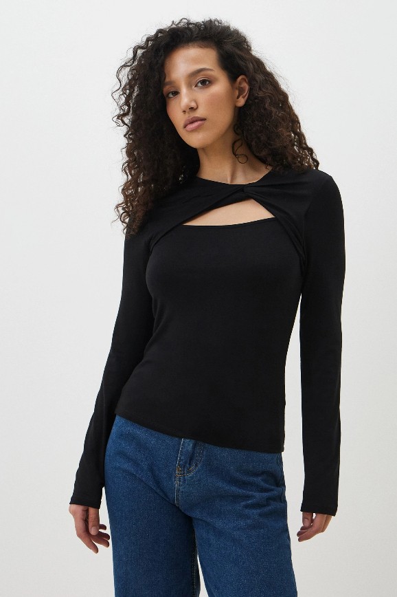 Элегантная модель, которая одновременно выглядит просто и вместе с тем цепляет взгляд. А всё благодаря вырезу в районе ключиц — изюминки, делающей образ интереснее. Этот лонгслив особенно хорошо подходит для вечерних выходов: ужина в ресторане, похода в театр или на выставку. Но вещь будет выглядеть органично и в повседневных аутфитах.