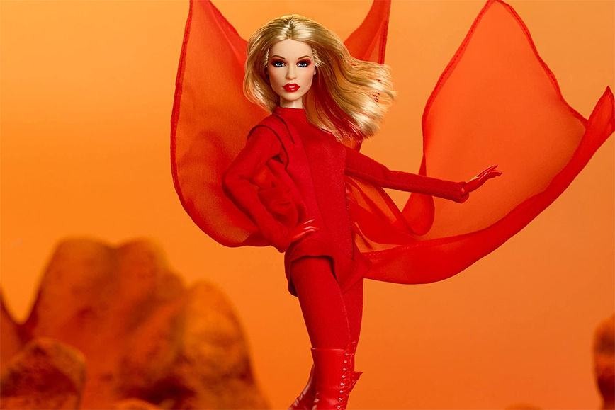 Mattel коллекционную куклу Barbie Signature, посвящённую Кайли Миноуг и её хиту Padam Padam. Новинка воспроизводит яркий красный образ певицы из клипа на песню. На ней — облегающее боди Mugler с развевающейся накидкой и высокие шнурованные сапоги Maison Ernest. Образ дополнен алой помадой и красными прядями, повторяющими сценический стиль Миноуг.