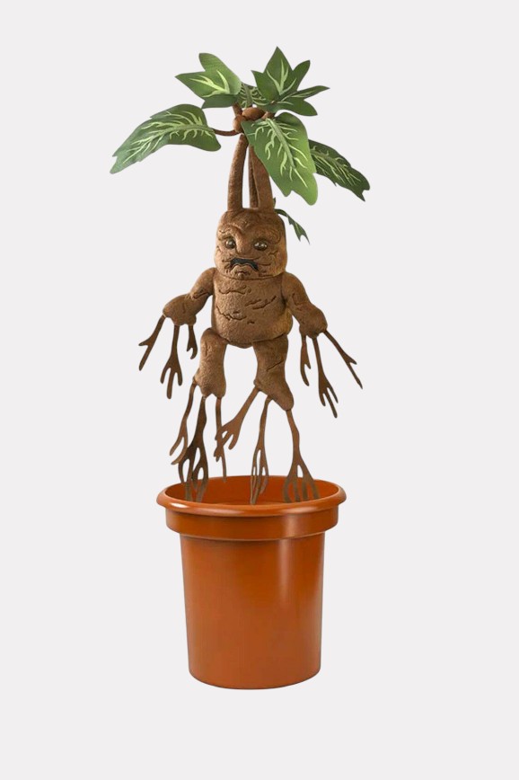 Интерактивная мягкая игрушка в виде знаменитого корня мандрагоры. Она тихо и мирно сидит в горшке, но, если её вытащить, то завопит, прямо как в фильме. И не замолчит, пока вы не вернёте её в горшок. Высота фигурки, когда росточек сидит в горшке, — 30 сантиметров. Работает от батареек.