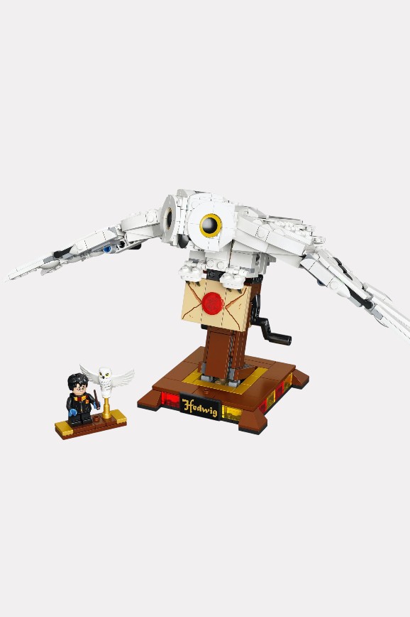 Сова сидит на специальной подставке, умеет махать крыльями и вращает головой. Также в комплекте идёт фигурка самого Гарри. Конструктор предназначен для детей и взрослых старше 10 лет.