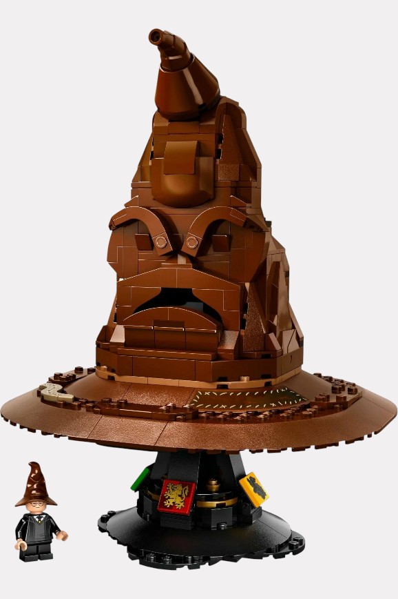 И не просто шляпа, а говорящая! Это первый в мире набором LEGO Harry Potter со звуковым кубиком: она разговаривает и поёт песни. Всего в её арсенале 31 звук.
