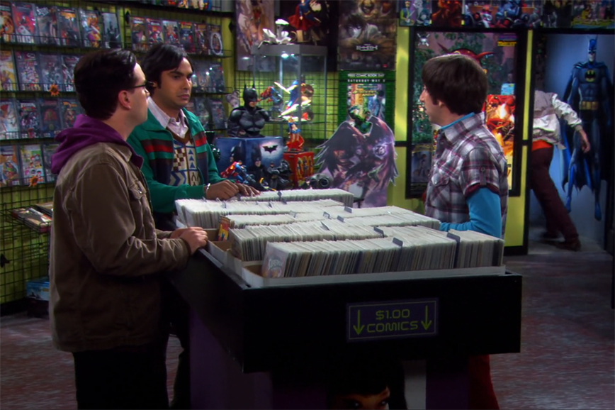 Персонажи часто заглядывают в магазин комиксов Стюарта. Это место действительно можно назвать обителью разных фандомов. Особенно хорошо его можно рассмотреть в седьмой серии третьего сезона. В этом эпизоде бывший парень Пенни собирается пожить у неё, что вызывает ревность у Леонарда. Чтобы обсудить ситуацию и понять свои чувства, Леонард и компания идут в магазин.