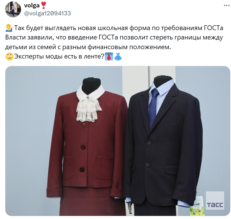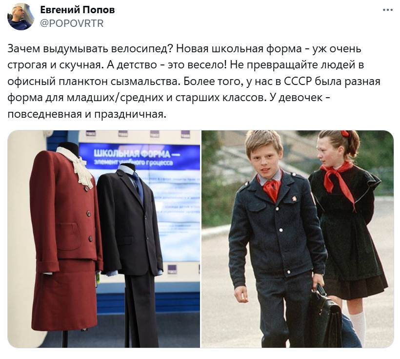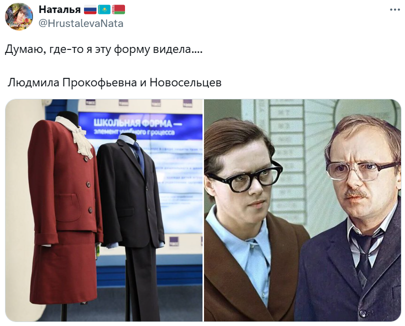 Некоторые пользователи Сети вспомнили форму из СССР, которая различалась для различных классов. Плюс были варианты повседневных и праздничных нарядов.