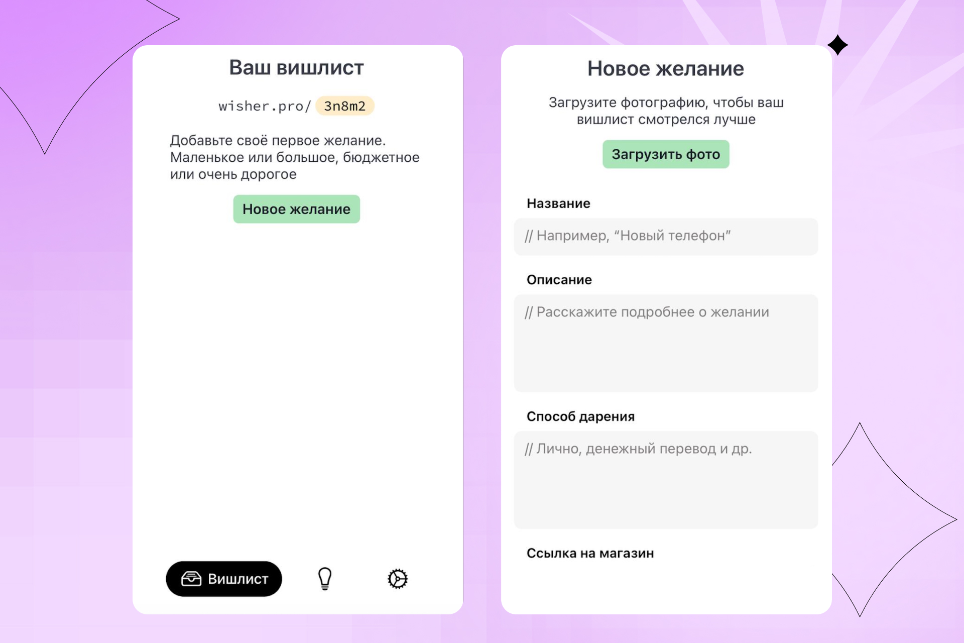 Недостатки: нельзя составить несколько вишлистов одновременно или под разные события — это всегда один и тот же список, который вы редактируете вручную.
