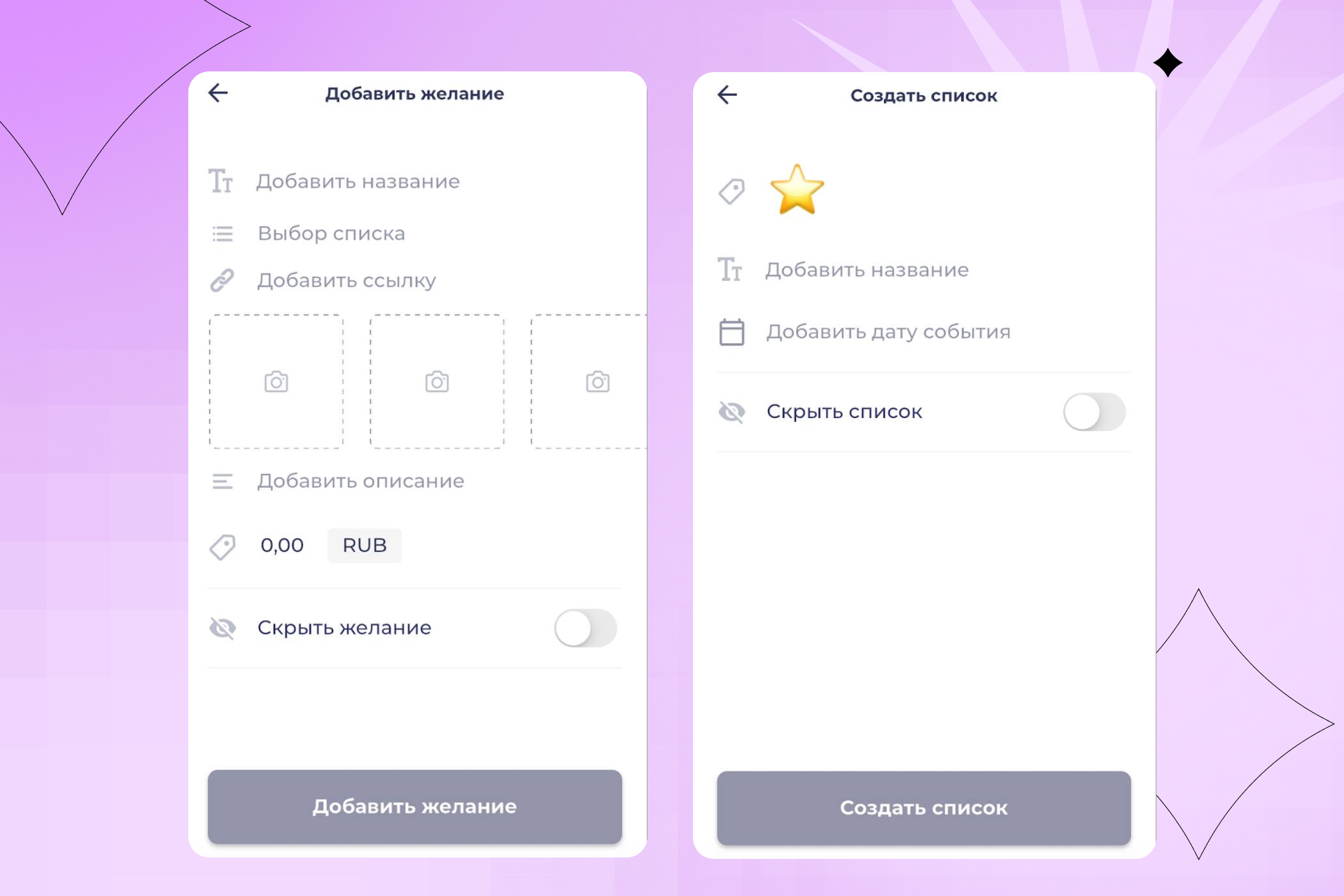 Как заявляют сами создатели приложения, они — социальный сервис, в котором можно собирать списки желаний и планировать мероприятия. Пользователи создают вишлисты к праздникам, для разных событий предусмотрены разные шаблоны. Также добавляют подарки вручную или через интернет-магазины и делятся ими с друзьями, здесь всё стандартно.