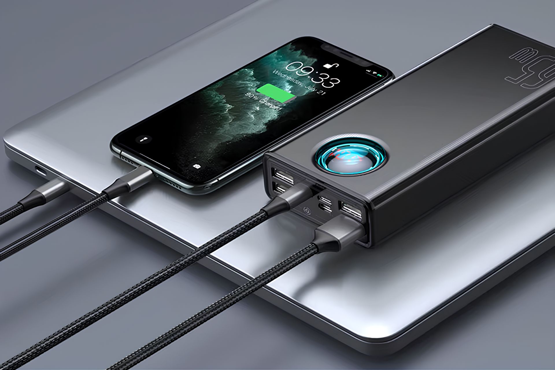 Устройство совместимо с разными протоколами быстрой зарядки, включая популярные решения для Android-смартфонов. Например, смартфон Vivo восполняется до 80% примерно за 40 минут. Для сравнения: обычный аккумулятор на такую же ёмкость тратит вдвое больше. С ноутбуками ситуация аналогичная: достаточно подключить кабель к USB‑C, и батарея получает стабильные 20 В без перебоев.
