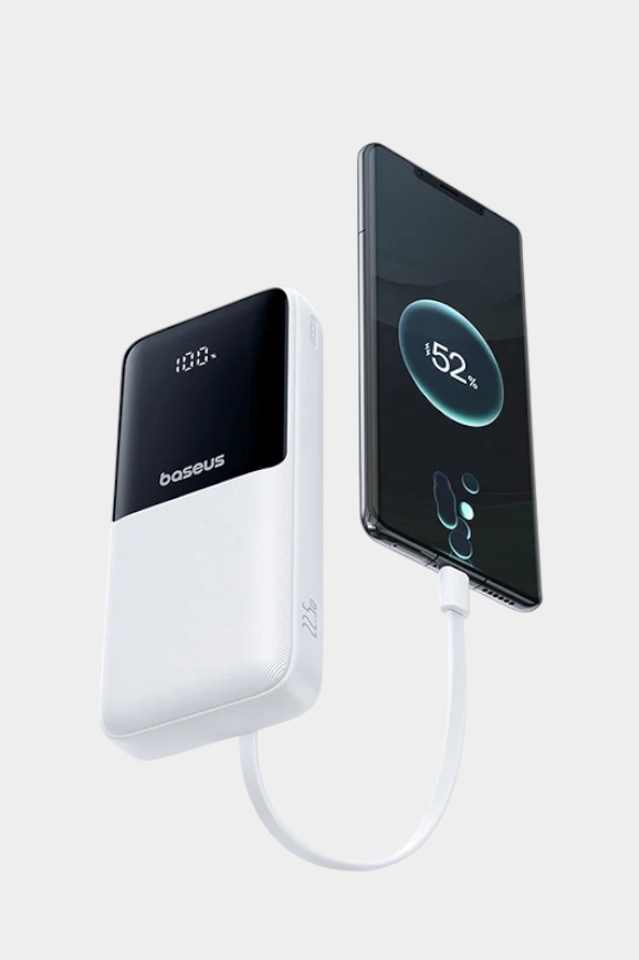 По размеру пауэрбанк сопоставим с небольшим блокнотом. Весит чуть больше пол-литровой бутылки воды. Он легко помещается в сумку или даже в карман джинсов. Пользователи отмечают, что после недели активного использования устройство всё ещё сохраняет запас энергии для очередной подзарядки. Единственный минус — отсутствие кабеля в комплекте, поэтому придётся приобрести совместимый USB‑C отдельно. В остальном Power Bank от Baseus сочетает высокую ёмкость, быструю зарядку и надёжную защиту — в общем, Мистер Совершенство, который будет рядом каждый день.