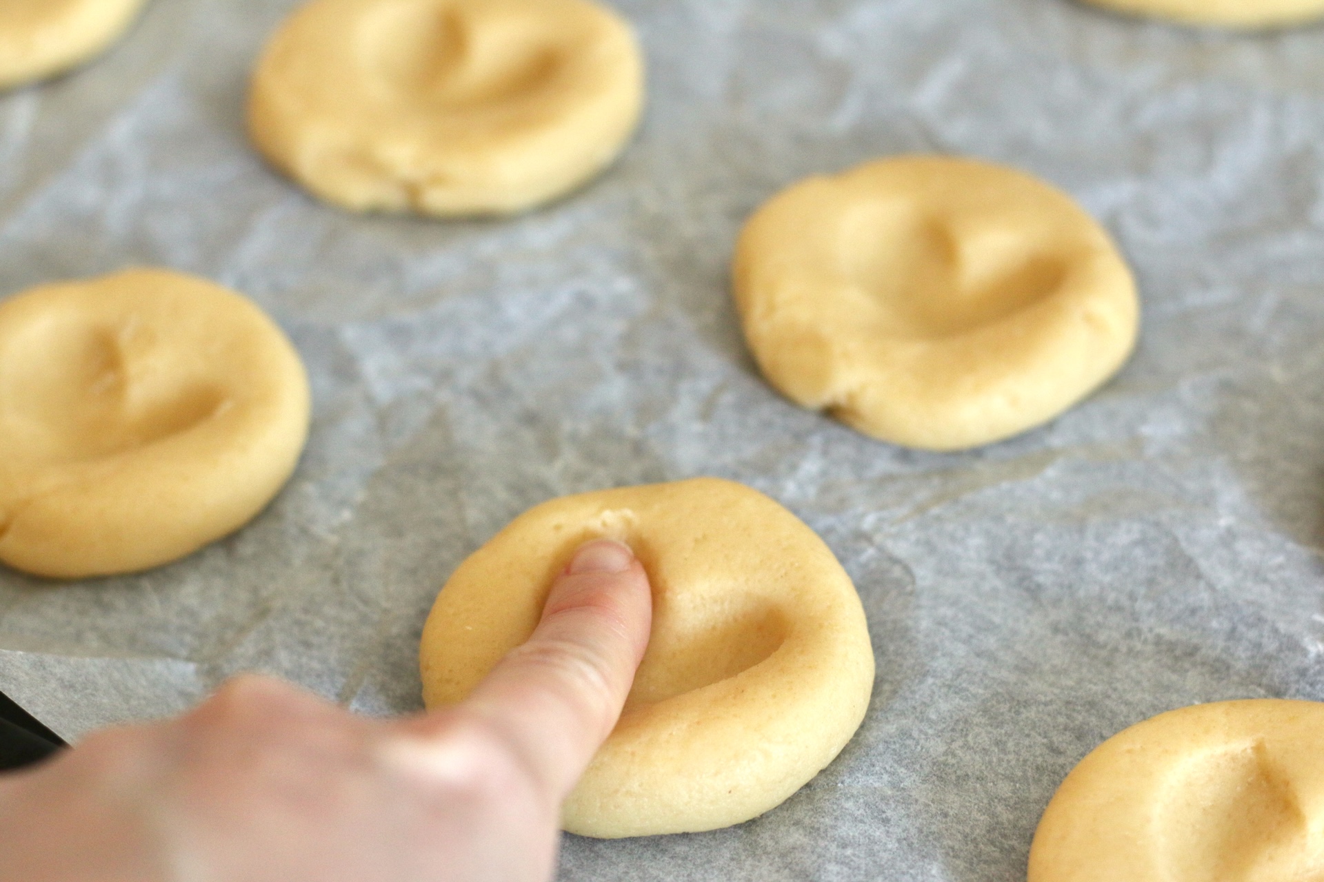 7. В центре каждой заготовки пальцами сделайте углубления в виде сердечка.