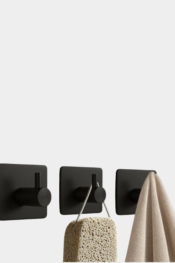 Чтобы их прикрепить, нужно просто снять защитную плёнку и приклеить, куда хочется. При этом они не портят стены и мебель. С их помощью можно реорганизовать пространство, например, повесить полотенце внутри шкафчика или сбоку от рабочей зоны. Этот набор из четырёх крючков подходят для кухонь, ванн и прихожей. Они сделаны из нержавеющей стали благородного чёрного цвета.