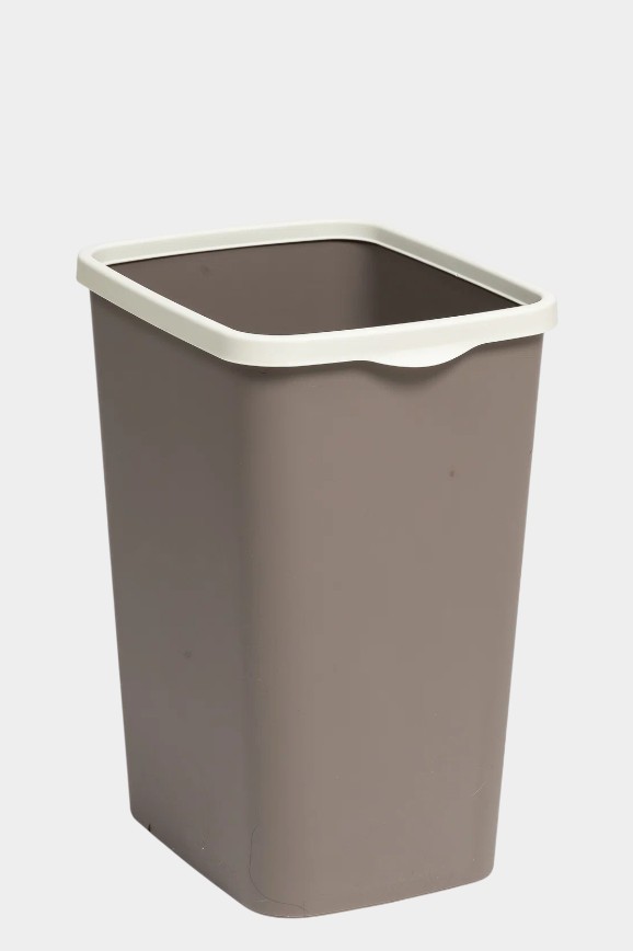 У него объём 20 литров — достаточно вместительное для сбора бытового и пищевого мусора. Специальный фиксатор удерживает мусорный пакет и предотвращает его сползание внутрь. Ведро сделано из прочного и лёгкого пластика, устойчивого к механическим воздействиям. Дизайн стильный и минималистичный — красивый шоколадный цвет с контрастными бежевыми фиксаторами.