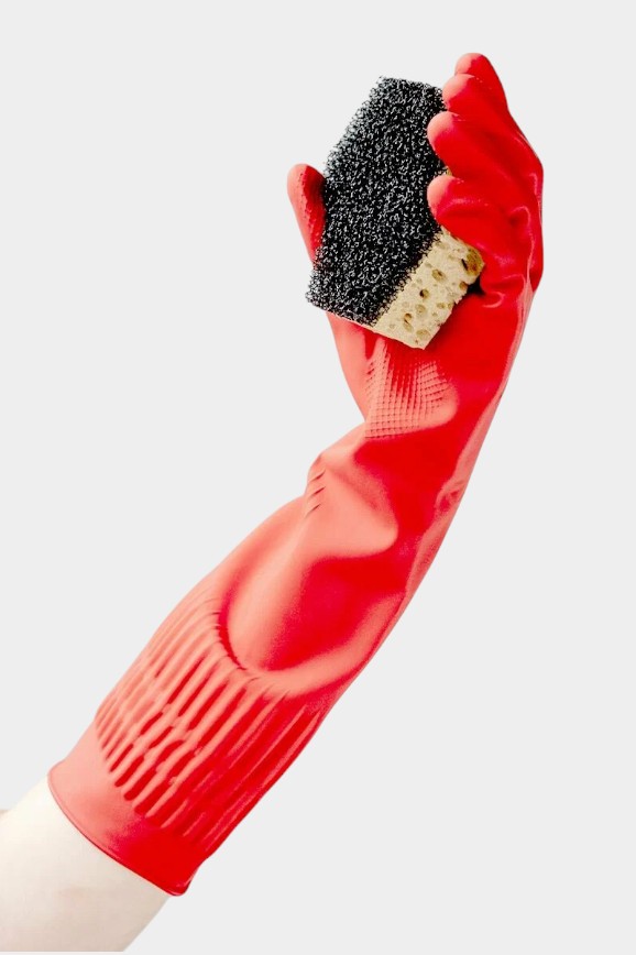 Резиновые перчатки нужны, чтобы защищать кожу рук от воды, грязи, бытовой химии и других загрязнений во время уборки. Эти сделаны из прочного латекса повышенной плотности и имеют рельефную поверхность на ладонях. Благодаря этому предметы не скользят в руках.