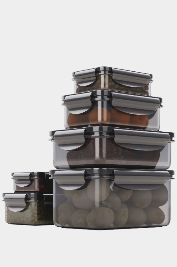 Контейнеры помогают дольше сохранять свежесть продуктов и навести порядок в холодильнике и шкафах. С ними удобно брать еду с собой на работу или учёбу. В наборе идёт шесть штук стильного дымчато-серого цвета. Объёмы ёмкостей: 0,24; 0,5; 1 и 1,5 л. Сделаны они из пластика и их можно использовать в микроволновках.